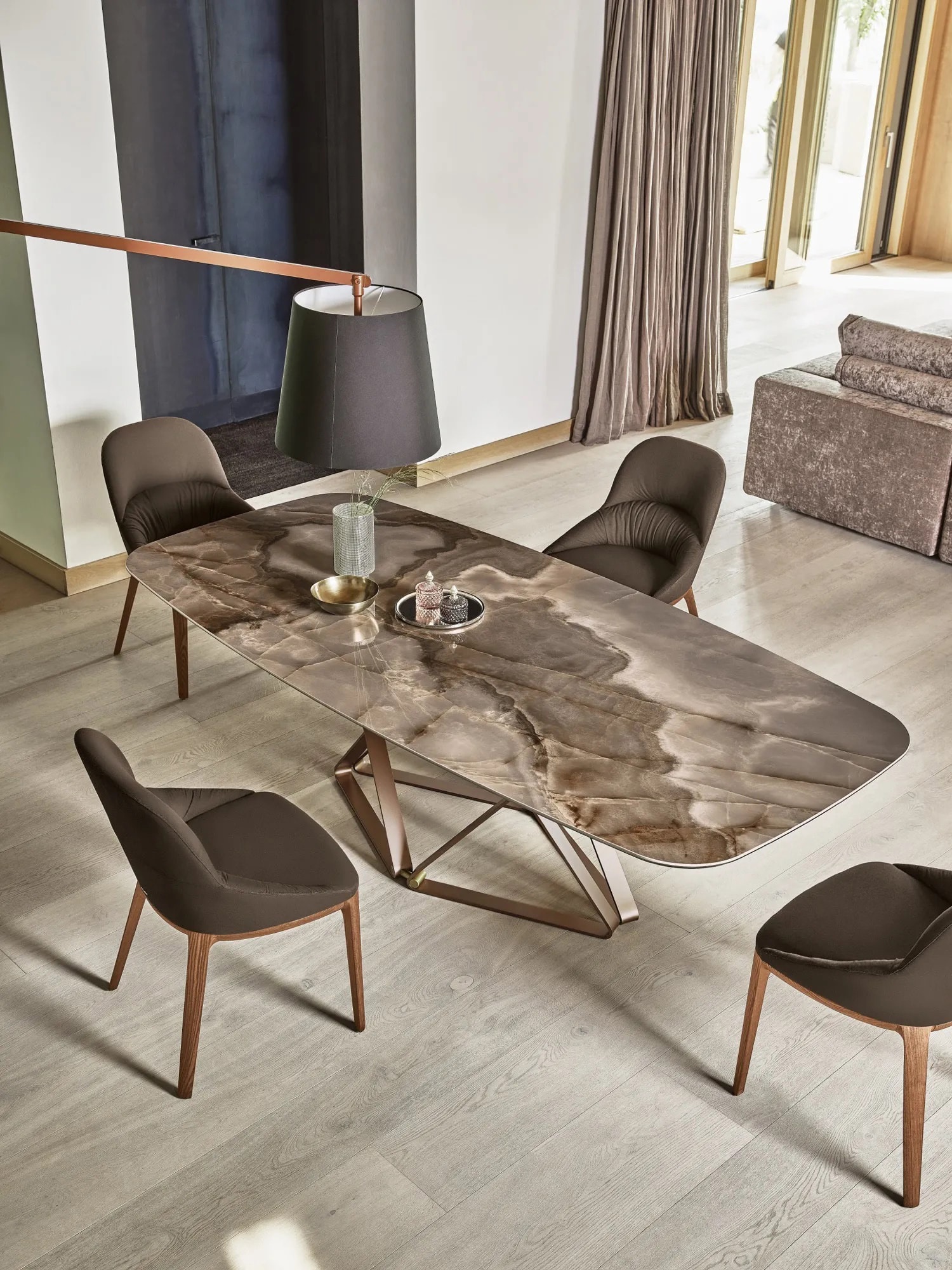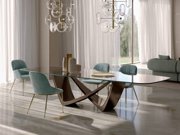 Majestic and enchanting, Bach is a table with a significant scenic vigor, sign of the never-ending search for elegance. The technically developed sculptural base with soft shapes creates a game of solids and voids, that make the impressive table delicate from a visual point of view.