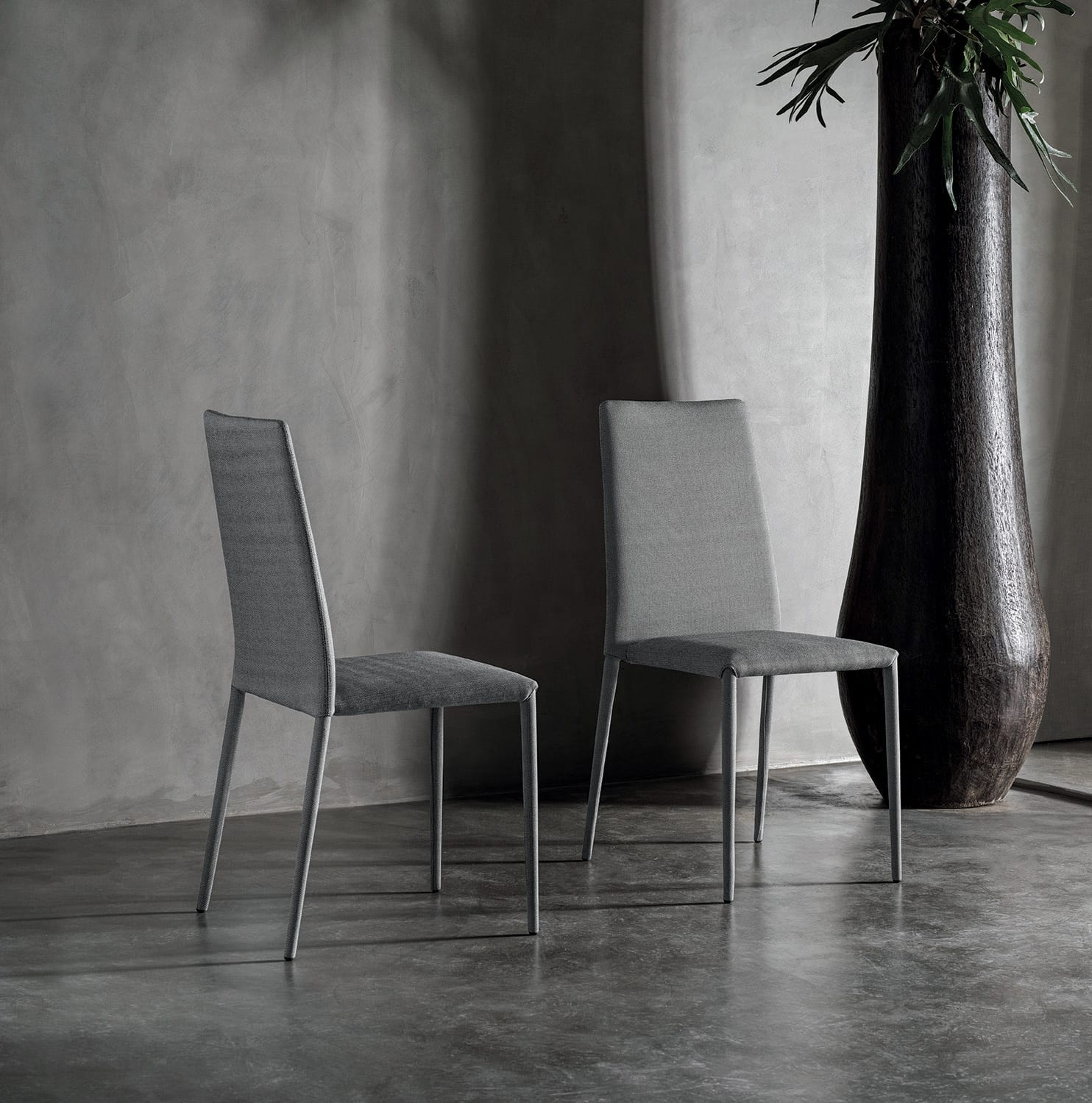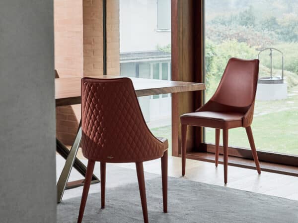 An embodiment of elegance and charm, with a casual allure and embracing comfort. Its finely curved and softly upholstered back and seat offer the luxurious comfort of an armchair. The rounded spindle legs add a touch of lightness and softness to its generous proportions, perfectly aligning with international tastes. A versatile must-have for any environment, from the dining room to the living room and studio alike.