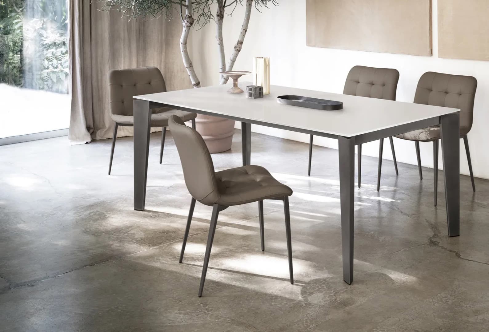 Bontempi QuickShip is available in Velvet matt anti-scratch white lacquered glass Top and Matt White Lacquered Wood Extensions with Anthracite Metal Frame.