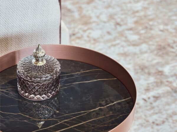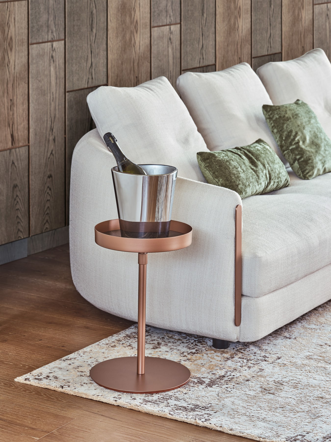 Lift effortlessly infuses chic sophistication into any setting, while also delivering on practicality. This adjustable side table features a metal lacquered structure and a glossy glass top, combining elegance with functionality in a stylish and versatile design.
