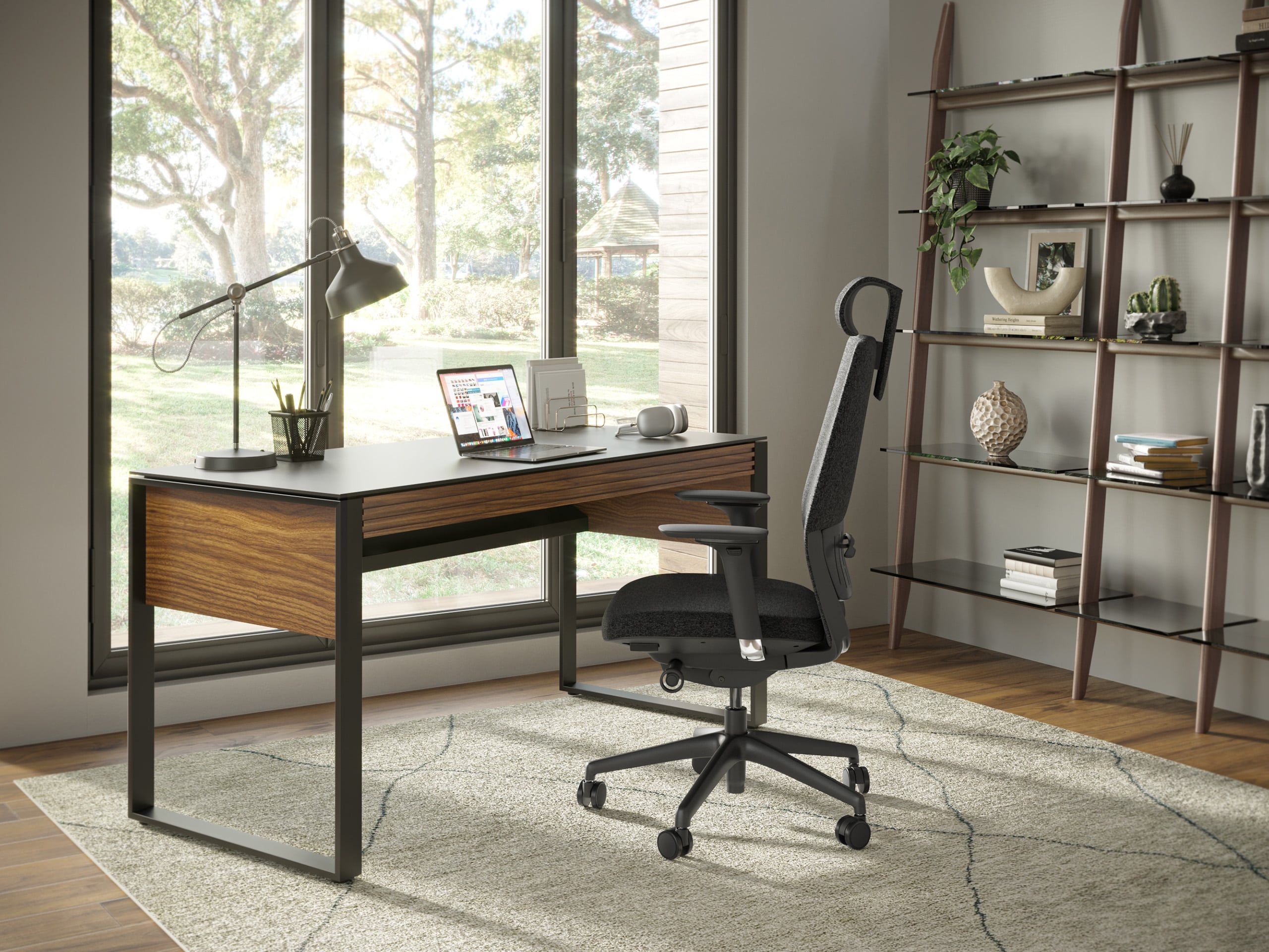 Packing big functionality into a smaller footprint, the Corridor Desk is an ideal choice anywhere that space is limited, but performance is required. This stylish home office desk provides an elegant satin-etched glass work surface, a built-in keyboard drawer, a modesty panel, and an intelligent wire and power management system—part of the award-winning Corridor Collection.