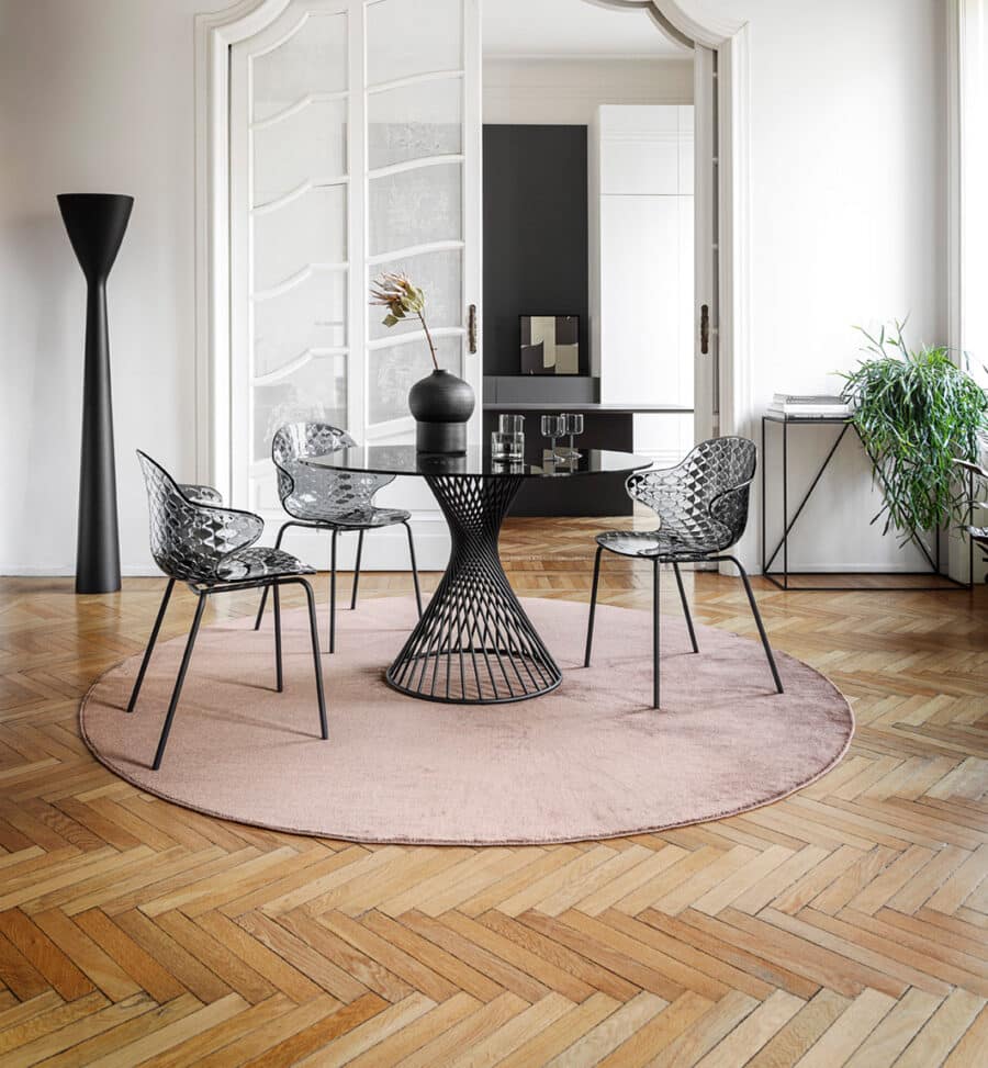 The VORTEX round table by Calligaris is more than just a piece of furniture—it’s a sculptural centerpiece that encourages connection and dialogue. Its round shape naturally brings people closer, promoting equal interaction from every angle. At the core of the design lies a helical metal base, crafted from tubular steel, which gives the table a striking, dynamic presence. Three circular steel plates securely support the tabletop, blending aesthetic intrigue with structural stability.