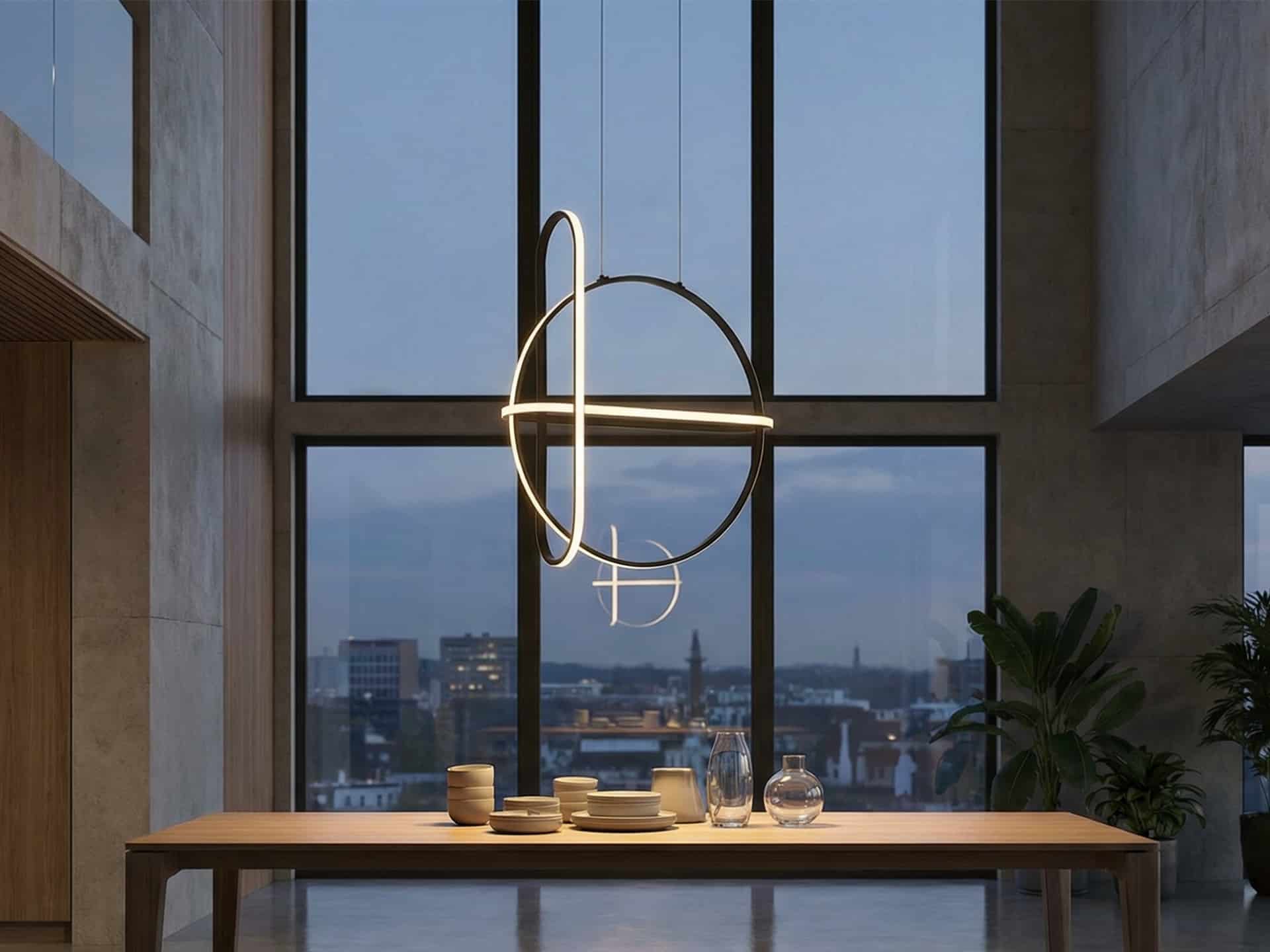 - Rhythmic Overlapping Rings: The interlocking design allows light to pass through the fixture from multiple angles, creating a sculptural play of light and shadow that changes as you move around the room.