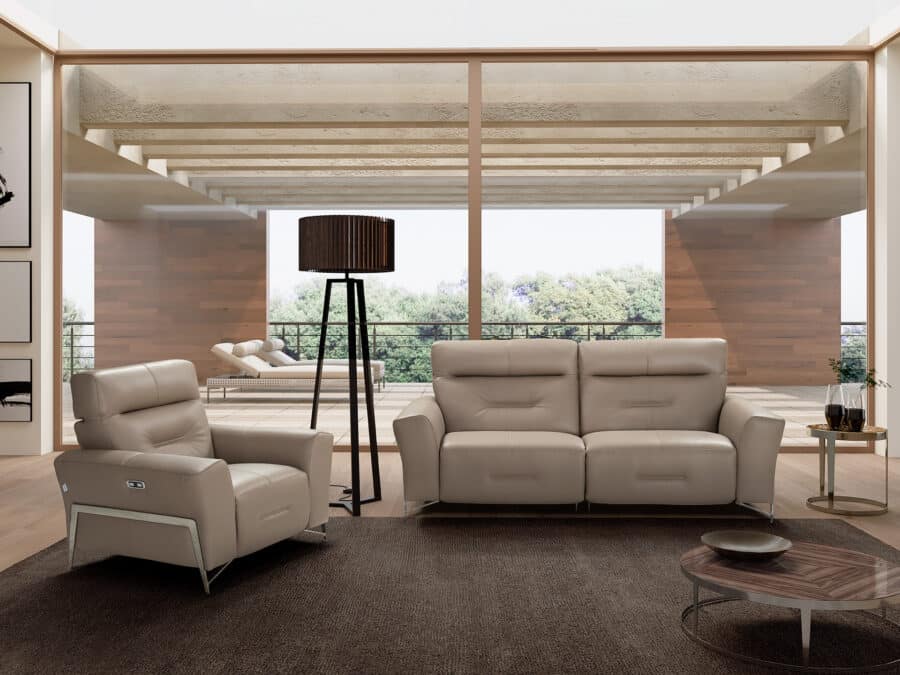 Designed for ultimate comfort and sleek modern style, the i779 Power Sofa by Incanto combines ergonomic design with luxurious Italian craftsmanship. This two-seat reclining sofa features electric motion recliners, manually adjustable headrests, and plush seating for personalized relaxation. The refined leather finish and contemporary metal legs add an airy elegance to any living space.