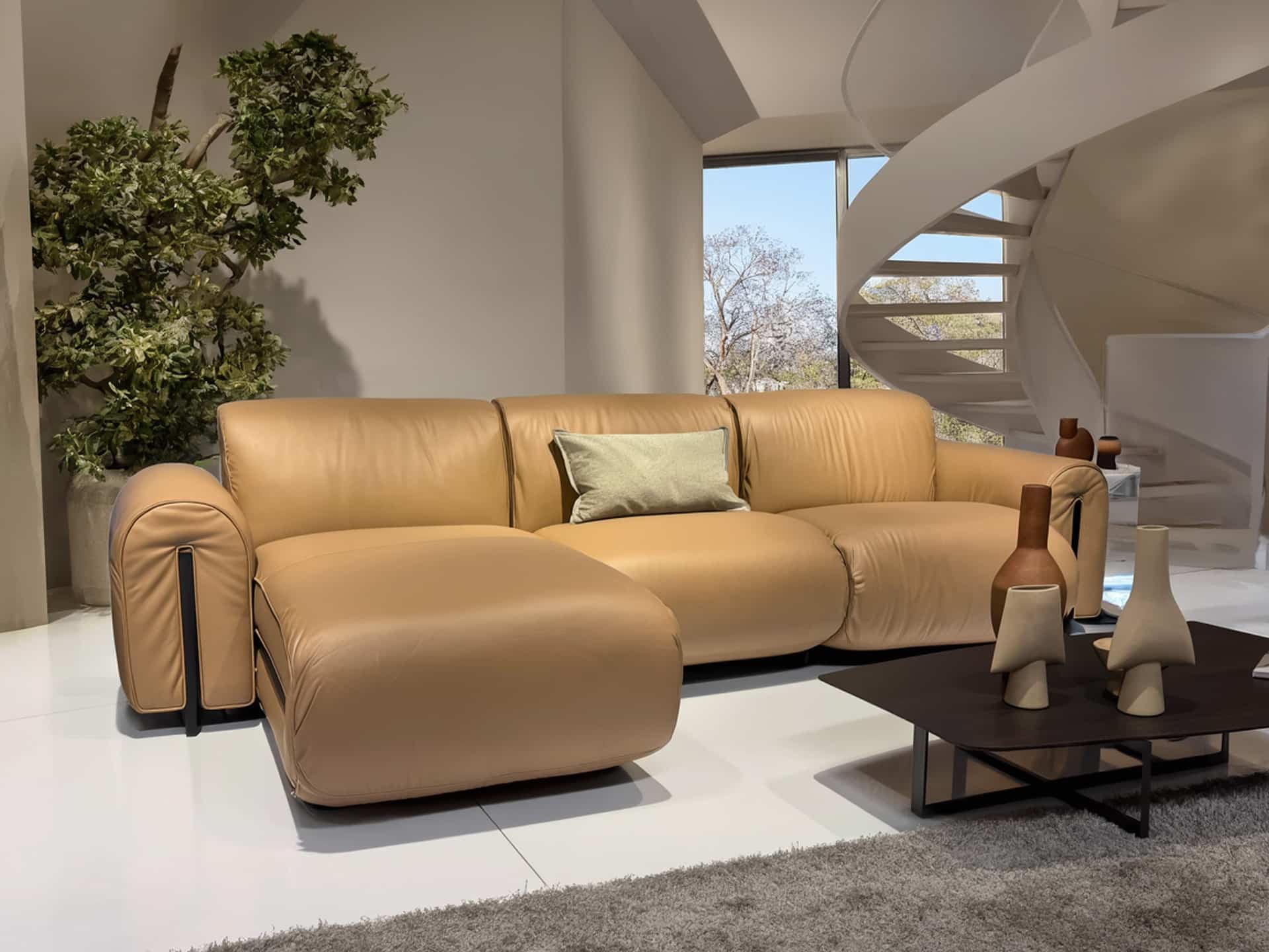 Natuzzi Italia Colle 3-Piece Chaise Sofa – Camel Color Leather