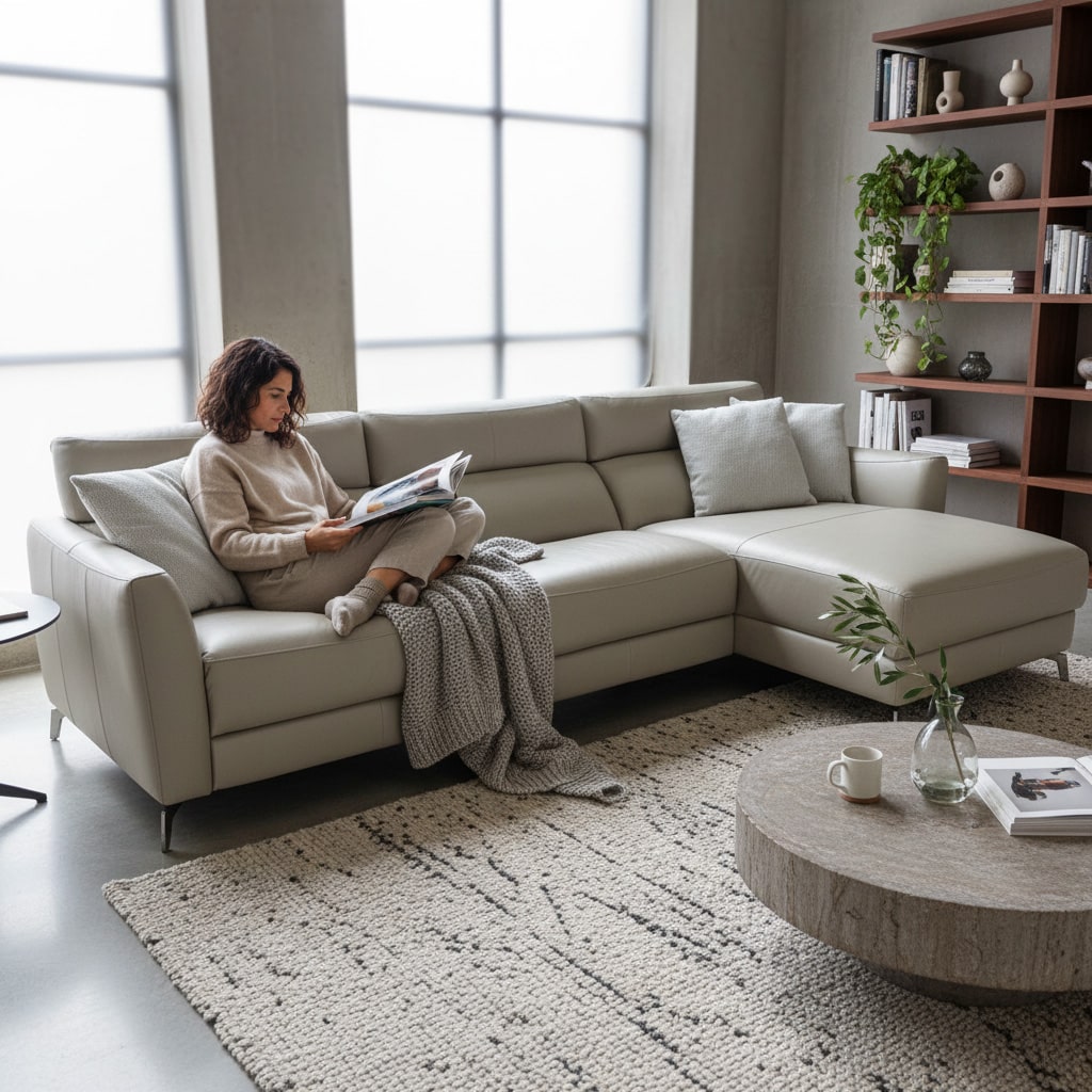 Natuzzi Italia Stan Leather Power Sectional with Chaise