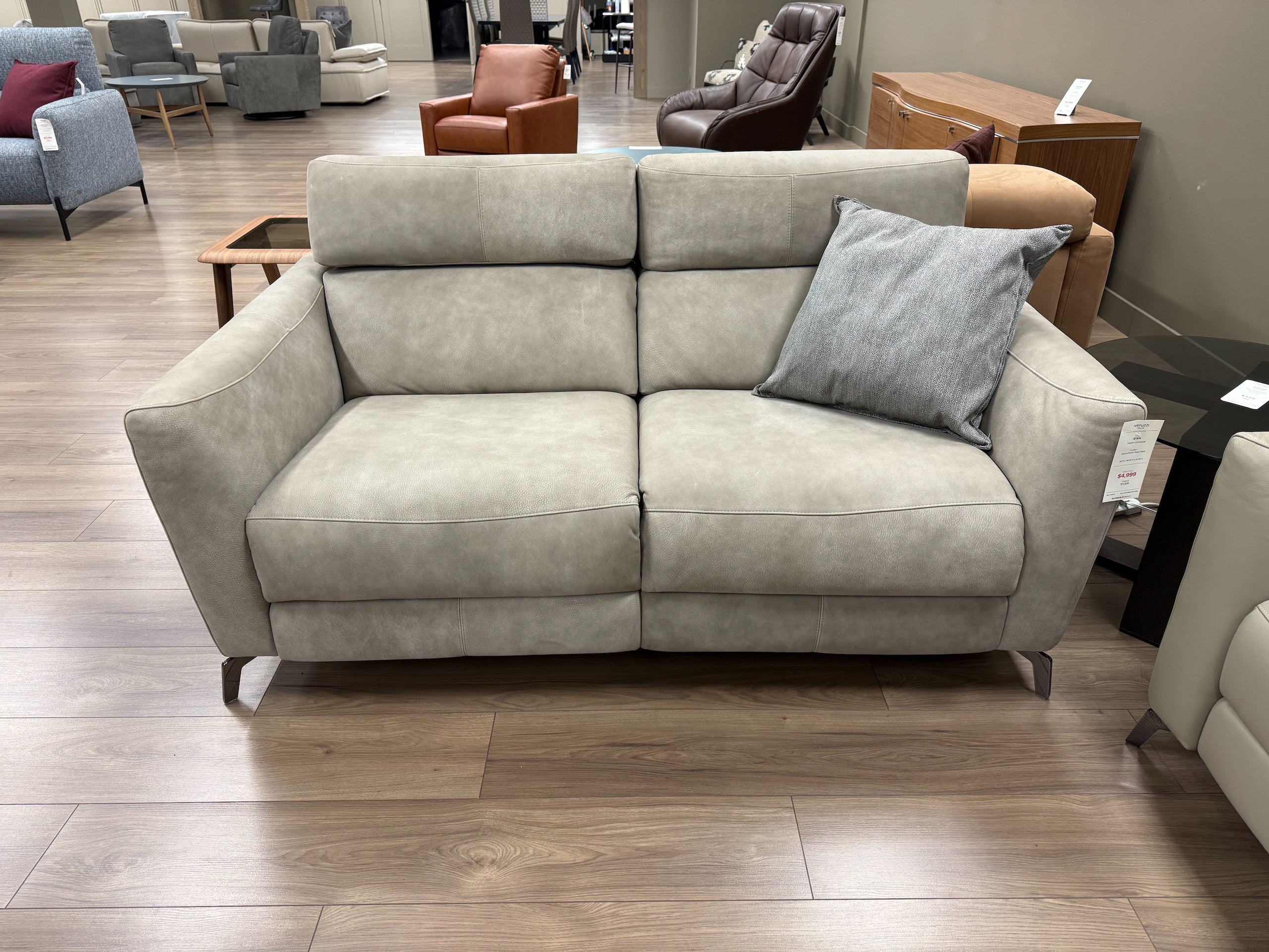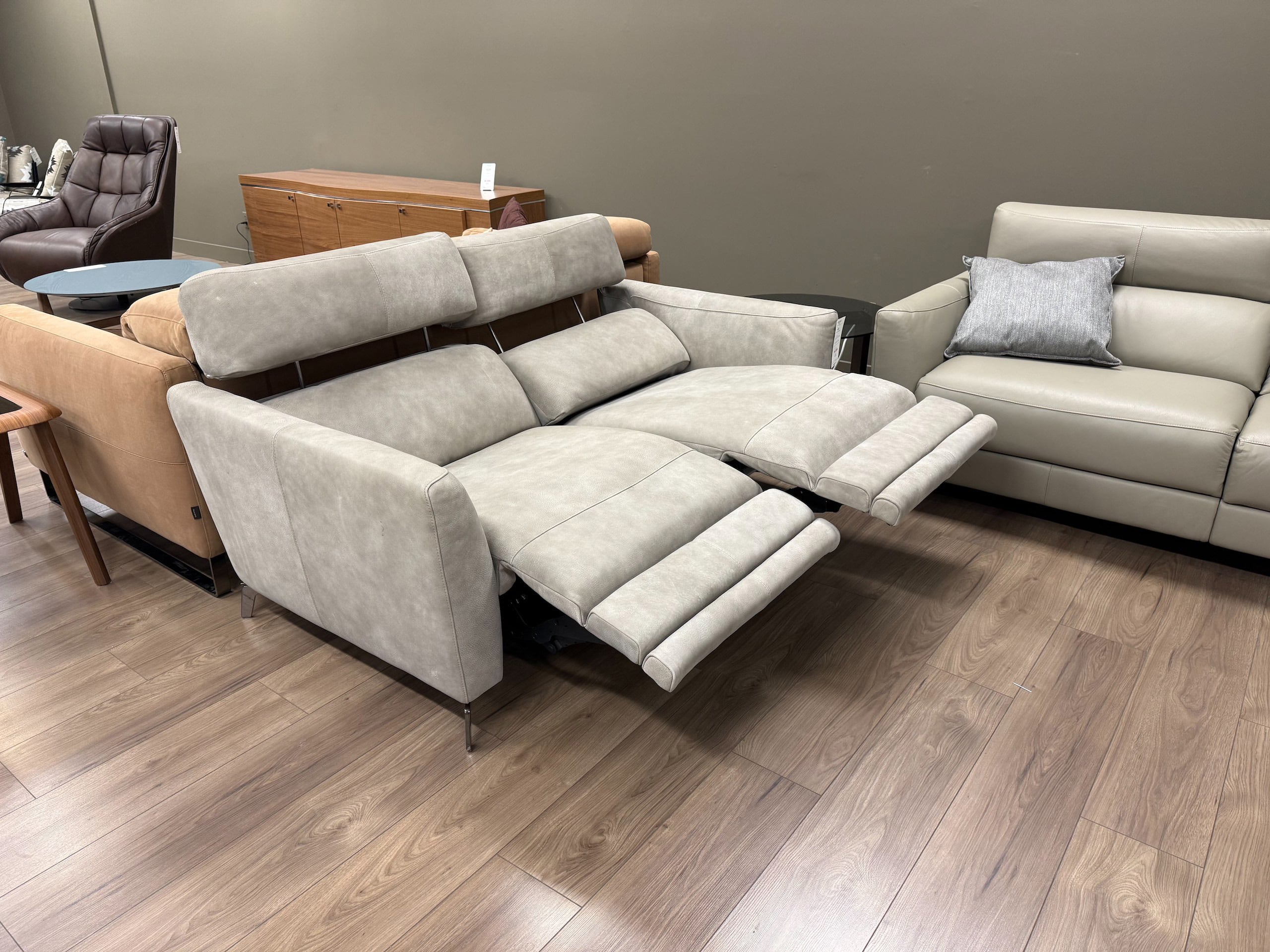 Natuzzi Italia Stan Leather Power Loveseat Taupe