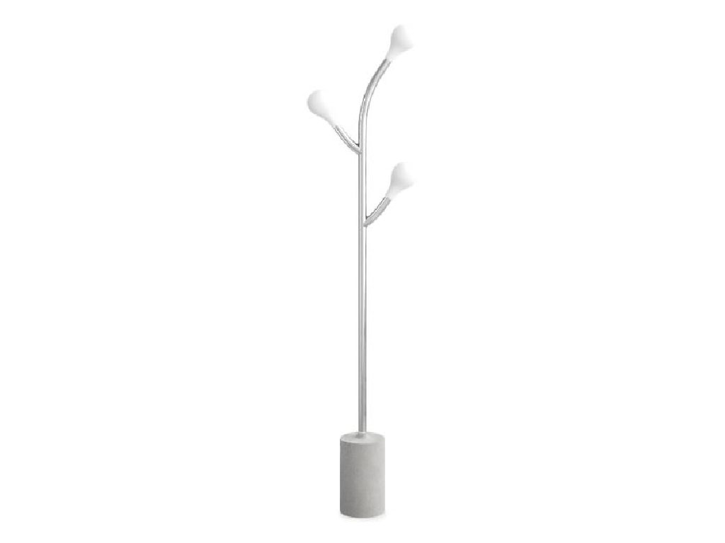 POM POM model floor lamp with metal frame and white acid-etched blown glass shades. The POM POM lamp is the result of the botanical study of a few exotic plant species. The glass lighting elements harmoniously and naturally take shape on the frame that is softened by a soft touch finish. The frame is made of metal, while the base is in cement and resin. The suspension and table versions are the result of the supposed evolution of these plants in the different environments.