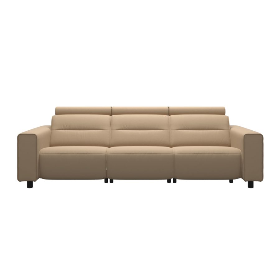Sleek lines with a modern look give Stressless® Emily sofa an embracing appearance. The contemporary design of the soft enveloping cushions invites you to sit down and relax. All seat modules come with an adjustable headrest, and with either fixed seat-back or fitted with motors for personal adjustment of back and leg support. This sofa comes with wide armrests. The recliners Stressless Tokyo and Stressless View both couple up nicely with the Stressless® Emily sofa.