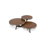 • The stationary walnut veneer tops are cradled by a dazzling champagne-plated ring